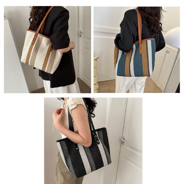 Korean style large capacity women's shoulder bag 2023 new simple vertical stripes casual tote bag fashion handbag